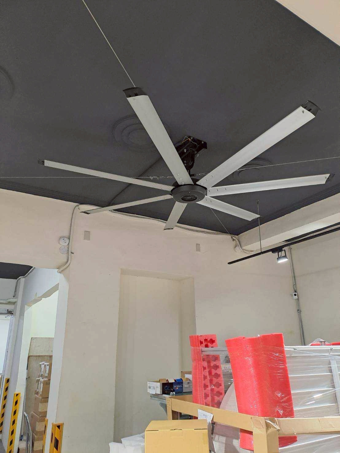 經由業務人員的現場分析與專業建議後,決定安裝 Powerful Series 3 節能工業吊扇,
