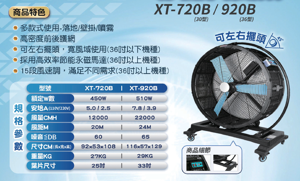 XTORNADO 大風扇系列 XT-720B / XT-920B