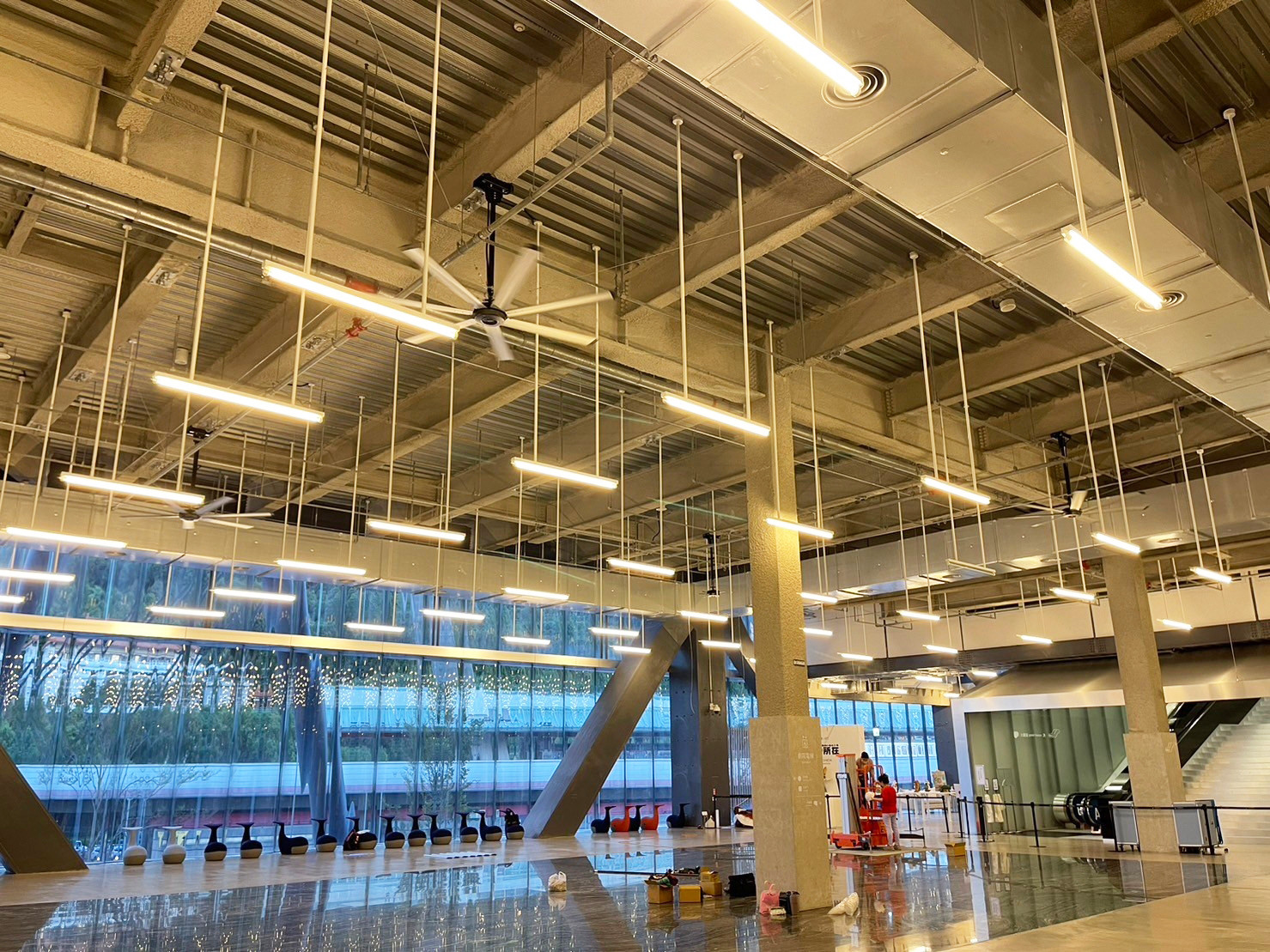 安裝在臺北表演藝術中心大劇院和太陽廳的Powerful Series 3_2.5米 節能工業吊扇和Modern HVLS Fan 當代經典吊扇,增加循環對流,加速展廳的冷房效果,從而提供賓客舒適的觀賞體驗。️