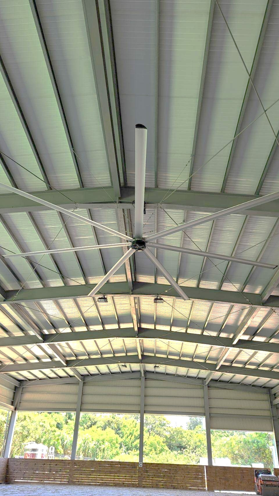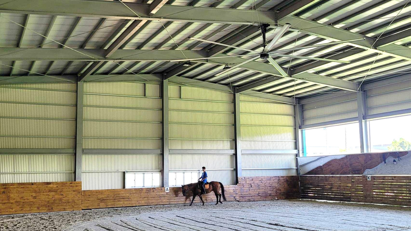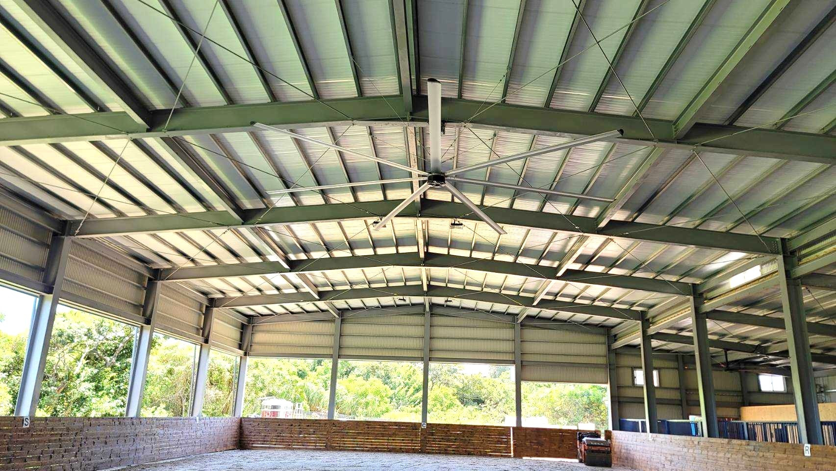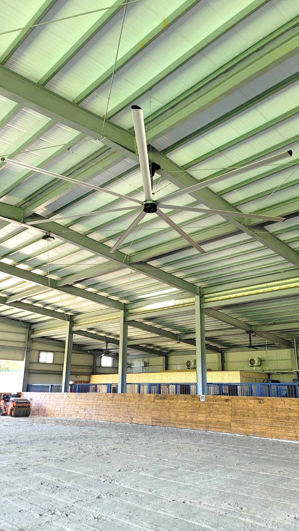 天星馬術指導中心的新馬場特別為貴賓考慮到了舒適的環境,尤其是在炎熱的夏天。為了讓大家在練習馬術時不至於因為高溫感到不適,場地的前後各安裝了兩台大型吊扇—Powerful Series 10_7.3M 節能工業吊扇。這些吊扇能讓空氣流通更順暢,快速排除熱氣,讓馬場內即使在酷暑中也能保持清涼。