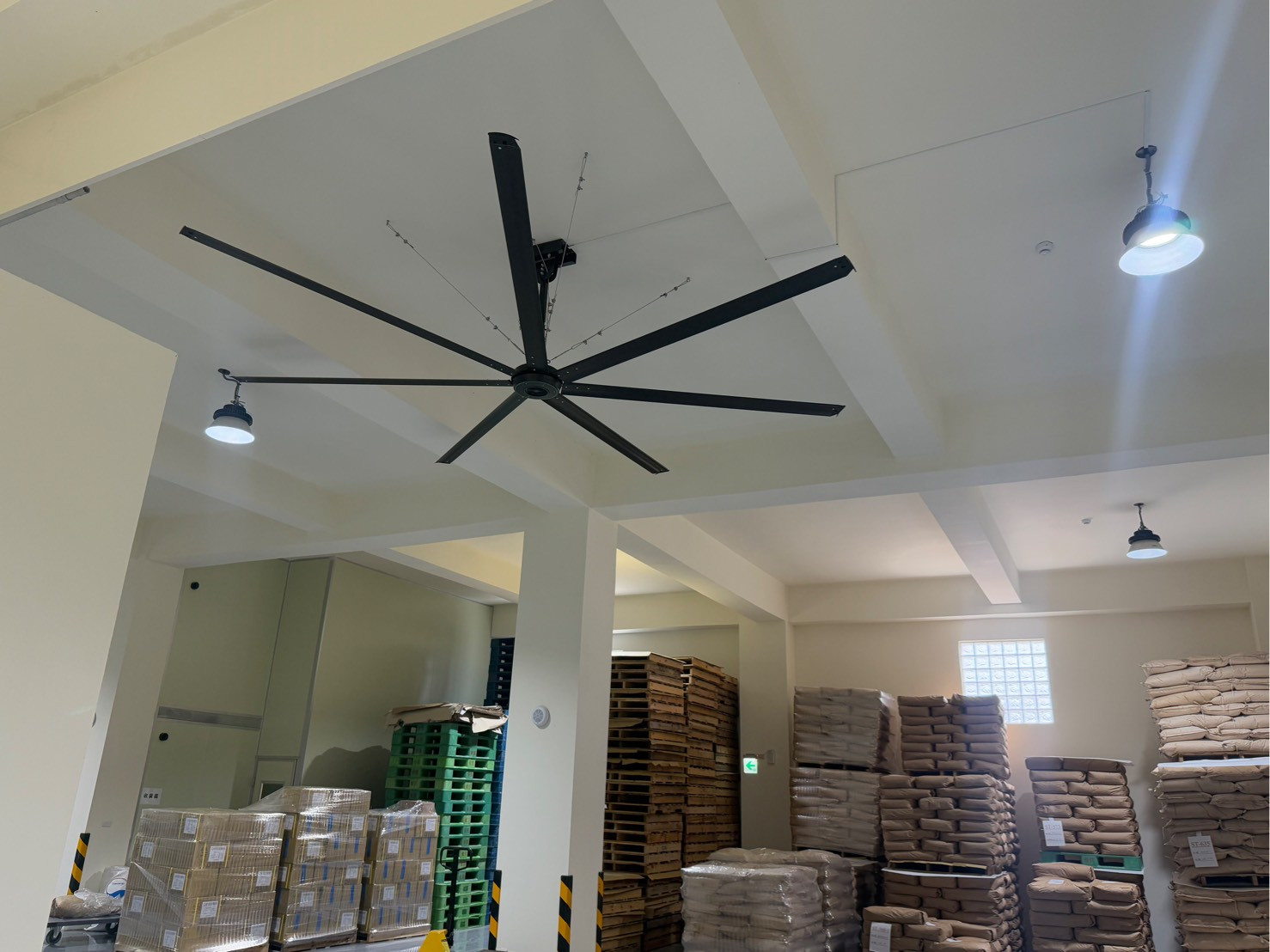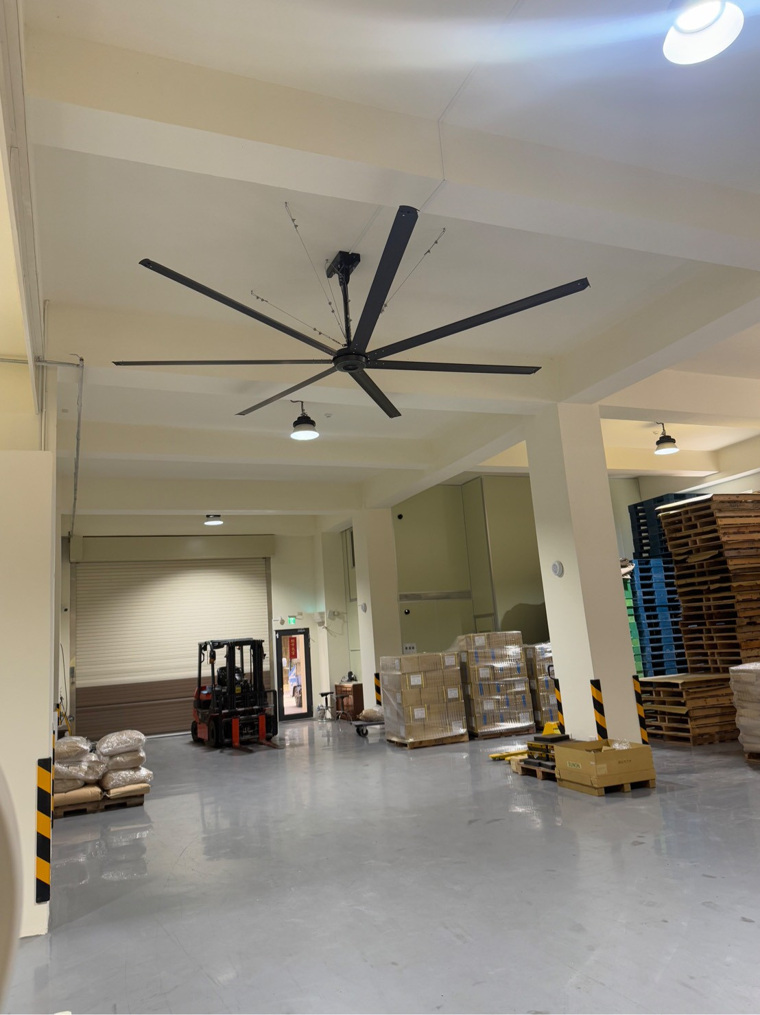 於是他們火速安裝了兩支Powerful Series 3_4.2M 節能工業吊扇,開啟強力循環模式