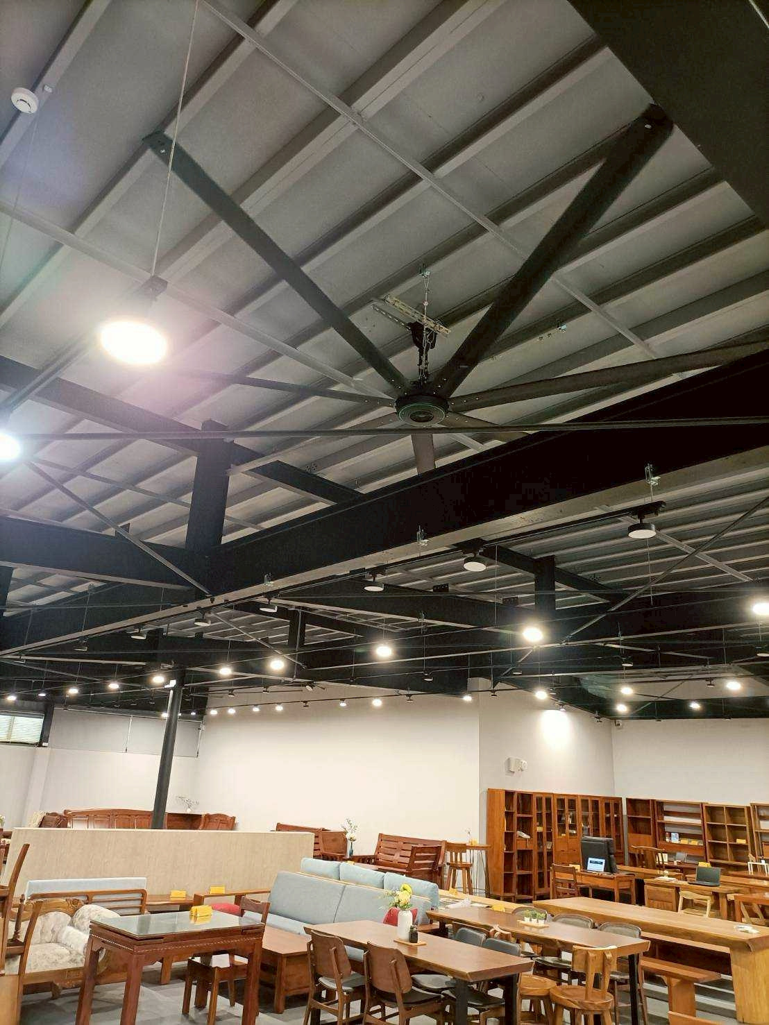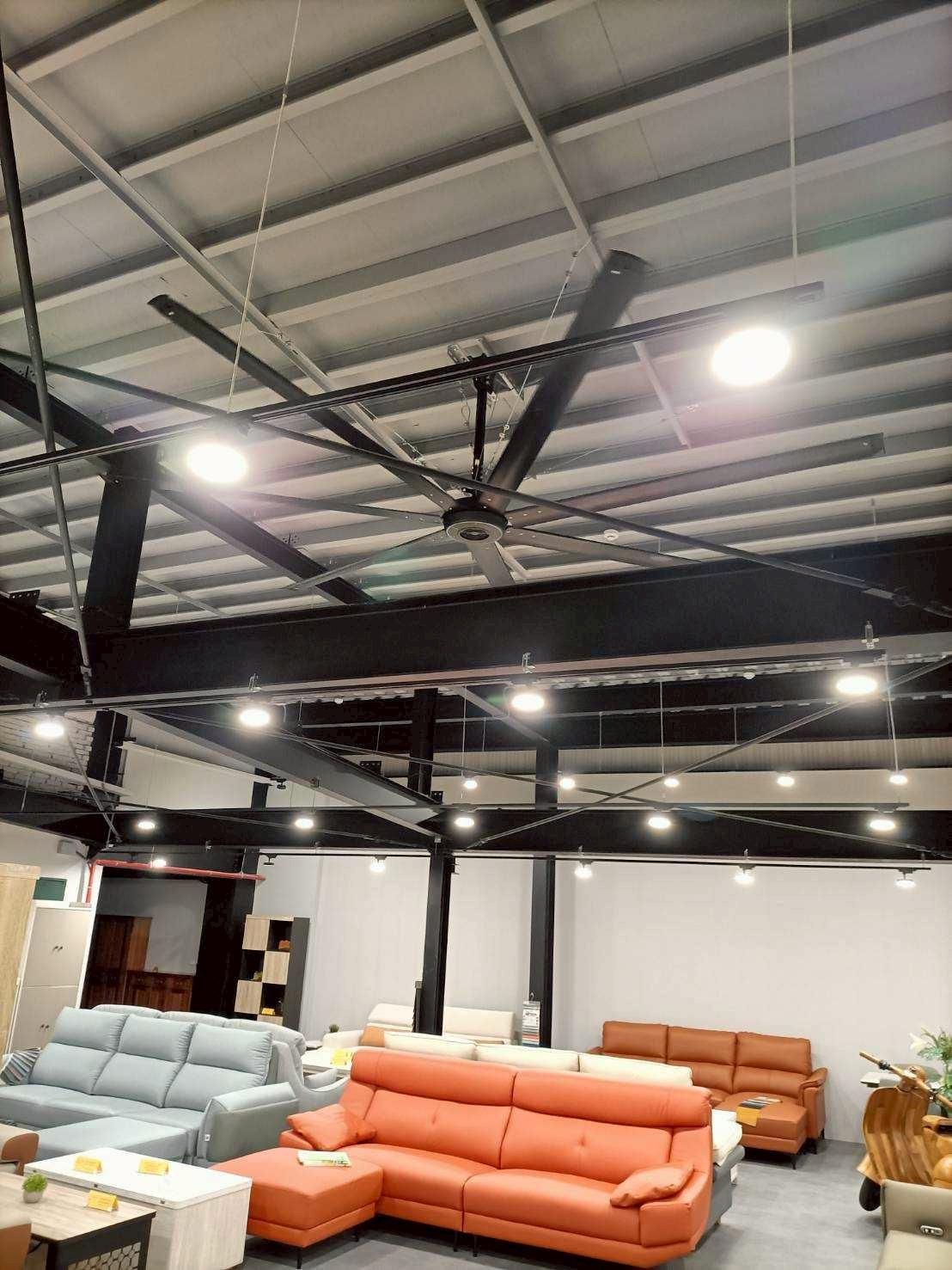 位於楊梅的某家具、寢具展售中心,為了打造舒適又具設計質感的選購環境,在全新裝潢的展售中心導入了 建準 SUNON Powerful HVLS Fan Series 3,打造涼爽又美觀的空間通風體驗。