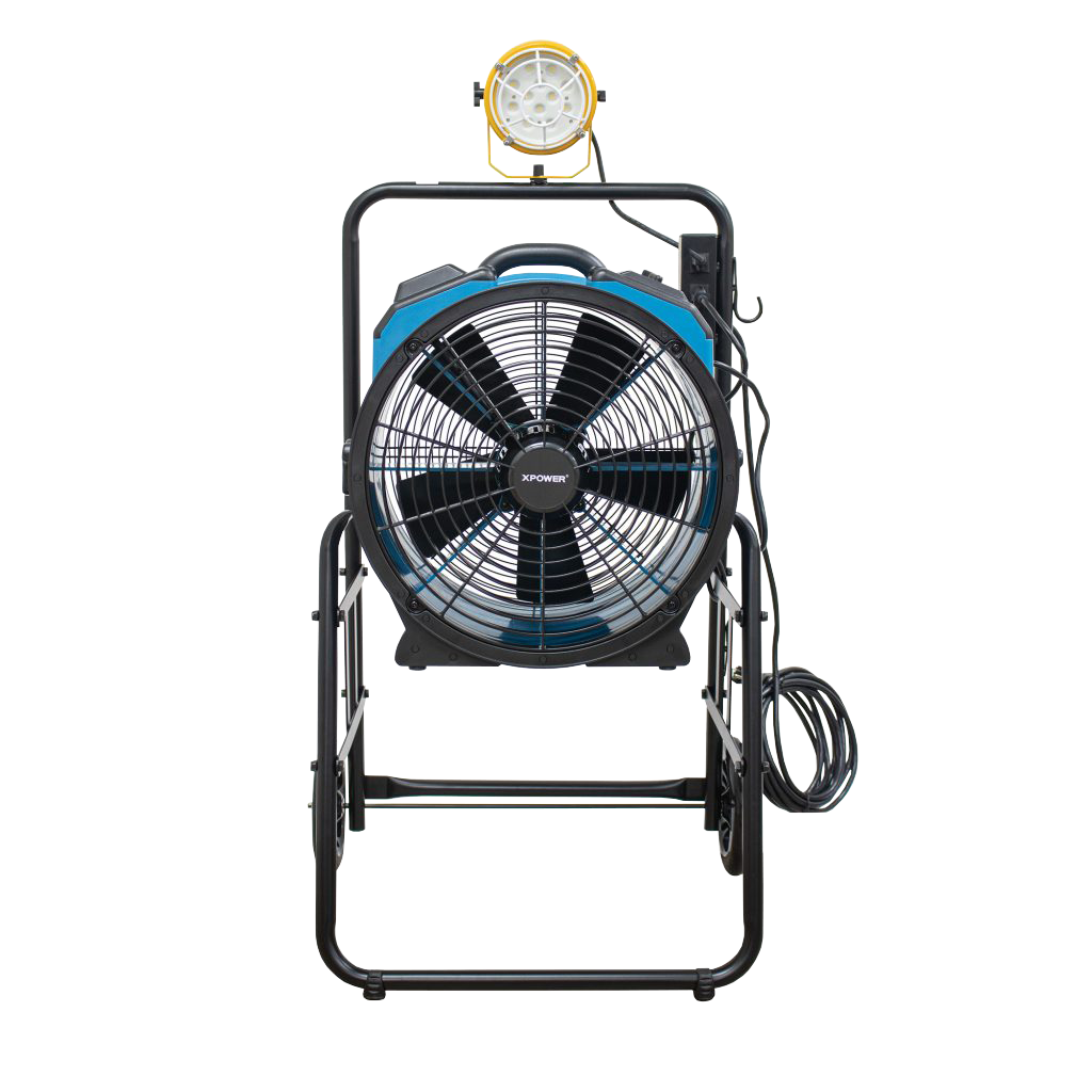 XPOWER FA-420K6 是一款帶輪子的移動倉庫/碼頭/拖車冷卻風扇套件。 該套件包括我們的 XPOWER 18 英寸軸向空氣推進器 (FA-420-6)、移動手推車 (420T) 和強大的 LED 聚光燈 (L-30)。 我們強大的軸流風扇不是典型的風扇,可提供強大的空氣循環和完整的拖車通風能力以及 3,600 CFM 的空氣流動。 我們以精確的角度安裝了大型鏟式風扇葉片,以實現長、強大、延伸的氣流,以深入到大多數 20/40' 集裝箱和 53' 拖車中。 我們強大的扭力馬達與我們的空氣翅片技術指南相結合,可產生大量 CFM 的空氣,真正將空氣推入聚焦光束中,從而實現極致的冷卻/通風。 我們的軸向空氣推進器配有 5 檔速度設定和內建 3 小時計時器,以方便使用。 420T 移動推車可協助該套件在倉庫/碼頭冷卻方面成為終極的多功能性和便利性。 具有兩個用於電源線管理的掛鉤。 兩個電源輸入用於連接風扇和可選的 LED 聚光燈。 堅固耐磨的輪子和前面的防滑墊可牢固地放置在任何表面上。 它包含兩個電源插座,用於插入軸向空氣推進器和 LED 聚光燈。 L-30 是我們的 LED 聚光燈,用於照亮黑暗的貨櫃和拖車。 5000K 光色下強大的 3,600 流明為安全和提高可見度指明了道路。 我們的 FA-420K6 還可用於其他商業環境,如車庫、車庫、汽車商店、溫室、CrossFit 健身房等。
