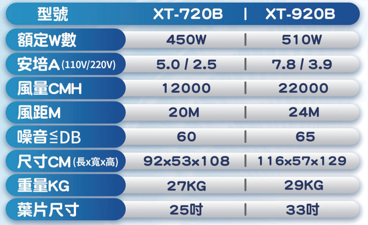 XTORNADO 大風扇系列 XT-720B / XT-920B
