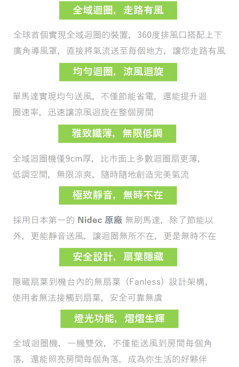 -安全可靠的無扇葉架構,使⽤者無法接觸扇葉,