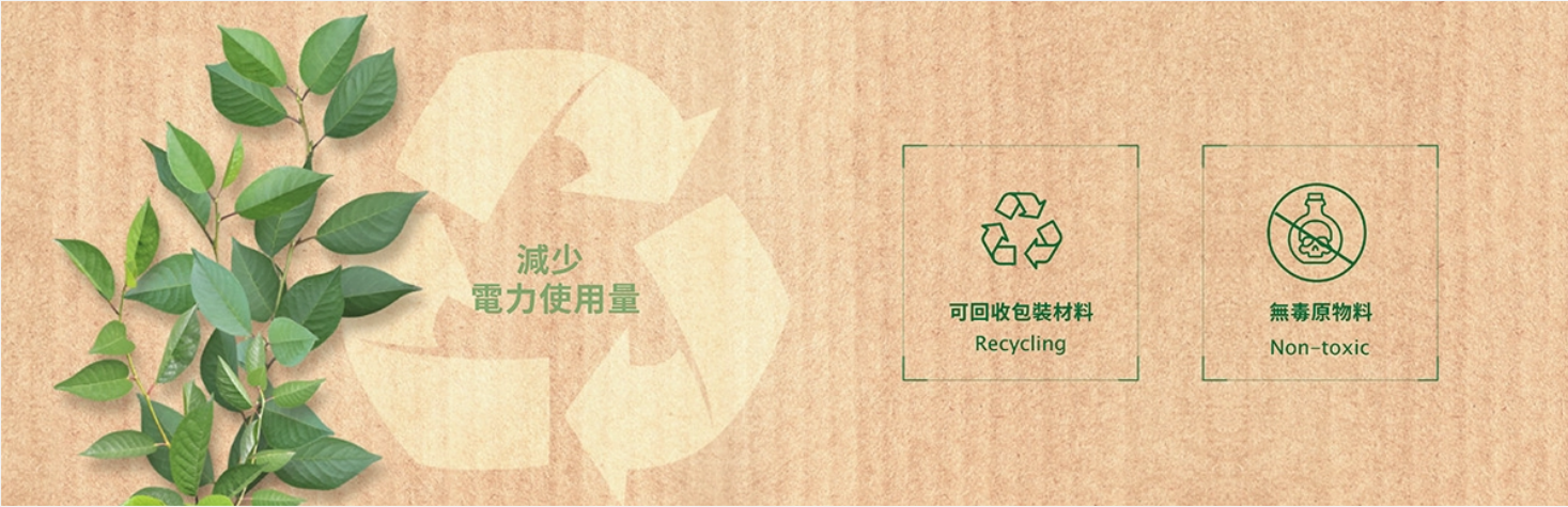 建準產品材質選用符合歐盟最新RoHS無毒環保標準的原物料,避免製造的產品對環境造成汙染。包裝方面,在保護產品的同時,也儘量採用可回收的材料。居家型較輕量化的Modern HVLS Fan 當代經典吊扇的包裝,捨棄採用較成本便宜的保麗龍包裝,改採可回收的紙材包裝,質量較重的大型工業吊扇Powerful HVLS Fan系列則採用紙材搭配可回收發泡材質來保護產品。讓產品材料可被回收再利用,為土地與海洋環境永續盡一份心力。